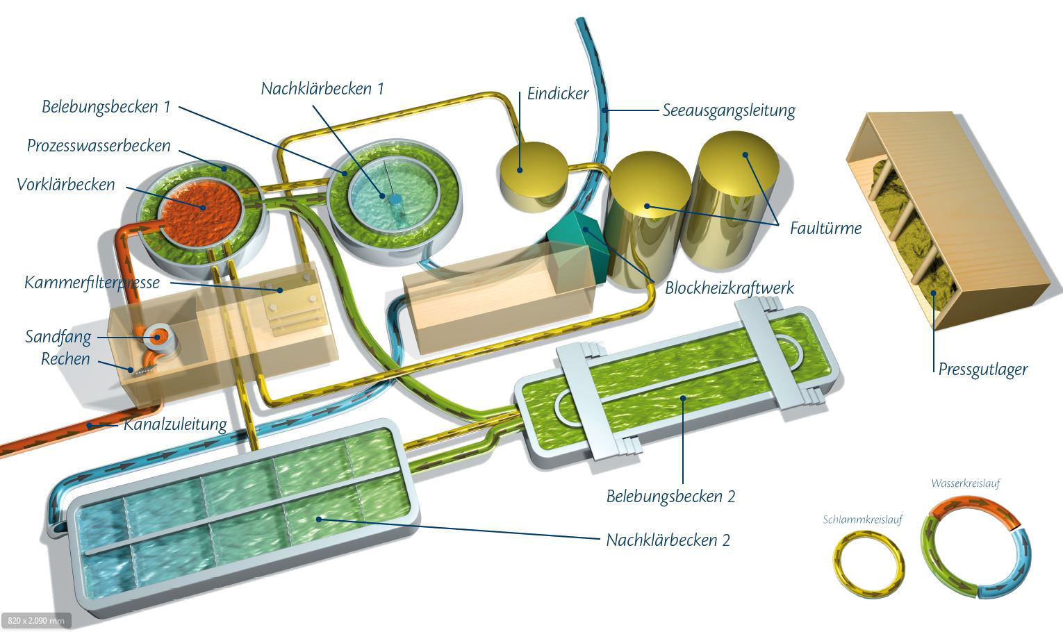 Wasser ab und wird zum Teil wieder in das Belebungsbecken